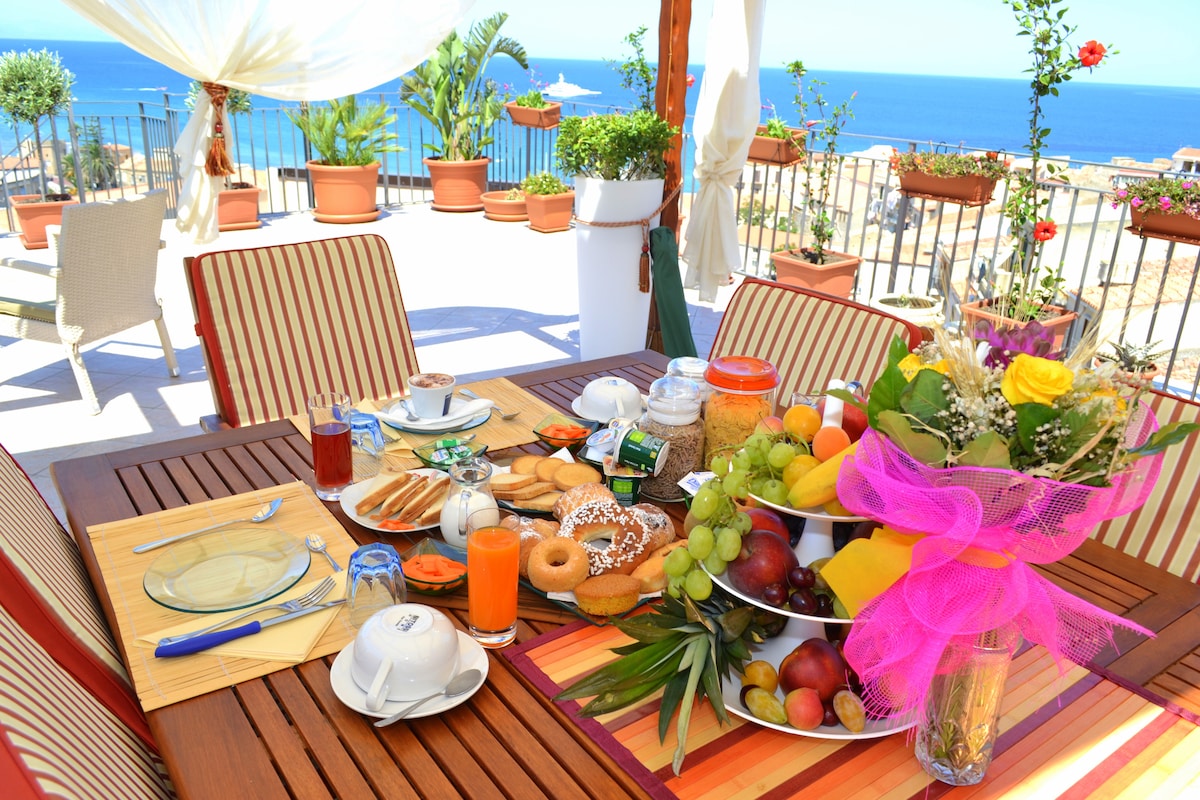 Lo Ionio è un mini appartamento ideale per 2/3 persone. Si trova al piano terra della struttura "Finestra sul mare", dispone di un angolo cottura, aria condizionata, bagno con doccia walk - in , wi fi, televisore con ricevitore, cassaforte e un meraviglioso terrazzino dove la mattina viene servita la colazione ammirando il mare o la sera la cena. Il gazebo, totalmente chiudibile, permette di godere il panorama anche nelle giornate meno calde. Il parcheggio all'interno del b&b è gratuito.