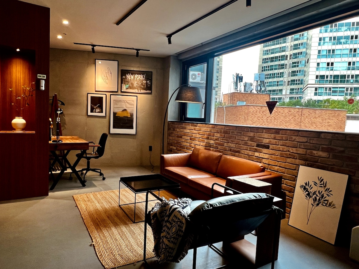 Experience Brooklyn-style luxury in the heart of Seoul at Boutique Hotel FRGE. Just a 10-min walk from Sindang (Line 2) and Dongmyo (Line 6), our stylish suite accommodates 4 guests with 2 queen beds, a full kitchen, private bath, and dedicated work station. Surrounded by trendy cafes, bars, and Seoul Central Market, it’s perfect for food lovers and explorers. Enjoy designer furnishings, vinyl turntable, smart TV, and the cozy ambience of your own hidden gem in Seoul.