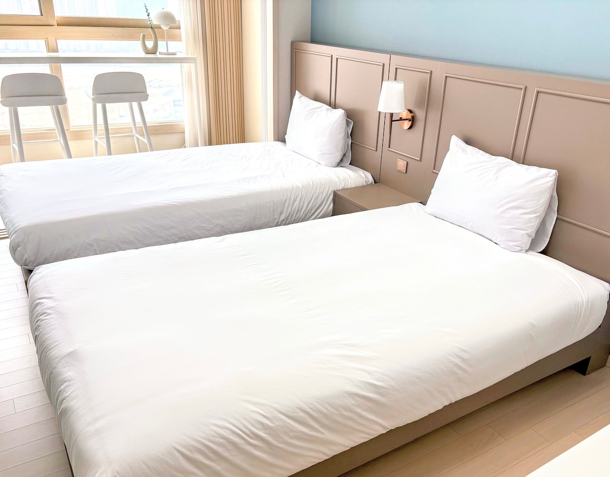 "2024년 3월 29일(금)부터 일회용품 무상제공이 금지됩니다" 퀸배드 1, 슈퍼싱글배드 1,의자 3개, 식기류 3세트 [Couple/Triple] Cozy 2-beds and 3/4 bath (1 Queen bed, 1 Super single bed) The Incheon Bridge view -Connect to Subway stn. "자가 격리가 불가능한 건물입니다." *Government Authorized* - Super Safe Guest house ▣무료(Free): 와이파이, 유튜브,건물내 주차 ▣비누, 네스프레소 캡슐커피머신,생수, 암막커튼,삼푸,린스,바디워시 ▣냉장고,드롬,커피포트,헤어드라이어,선풍기,청소도구 ▣달빛축제공원역 : 도보5분 ▣식당,카페, 편의점등 건물내 입점 ▣냉방&난방 안내 2025년 10월 13일 냉방 종료 / 10월 27일 난방 시작 ▣달빛축제공원에서 산책 ▣수영장개장(6월예정) : 투숙객 할인