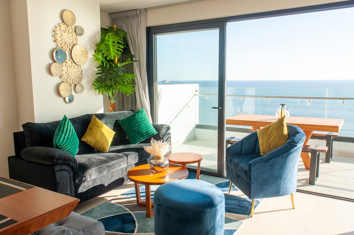 🏬Altomare Building 🌅Stunning View Apartment Enjoy breathtaking views from this beautiful apartment designed for comfort and relaxation. Ideal for up to 6 guests (preferably 4 adults and 2 children). 🛏️Features a king-size bed, two twin beds, and a comfortable sofa bed. Guests have access to top-notch amenities including 24-hour parking, a swimming pool, Turkish sauna, fully equipped gym, and a relaxing massage room.