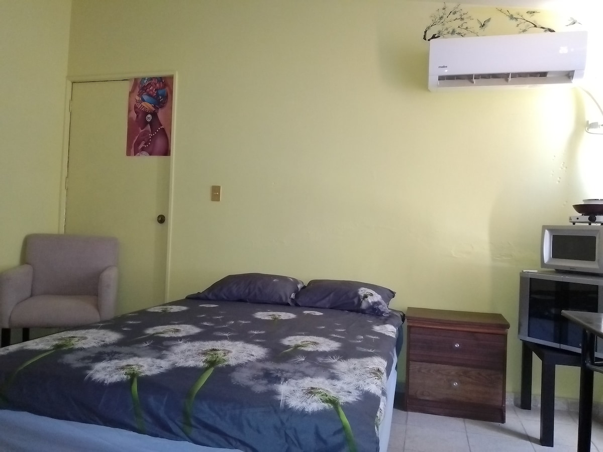 ¡Bienvenidos a nuestro espacio! La recámara cuenta con todo lo necesario para tener una estancia confortable. El acceso es totalmente independiente por lo que pueden gozar de su privacidad, además de contar con cochera y así disfrutan mientras visitan nuestro bello puerto. Así mismo, encontrarás nuestra ayuda en la casa de al lado por si necesitan algo. Nos encontramos a 5 minutos del estadio "Teodoro Mariscal" y a 7 minutos a pie de la playa y el acuario.