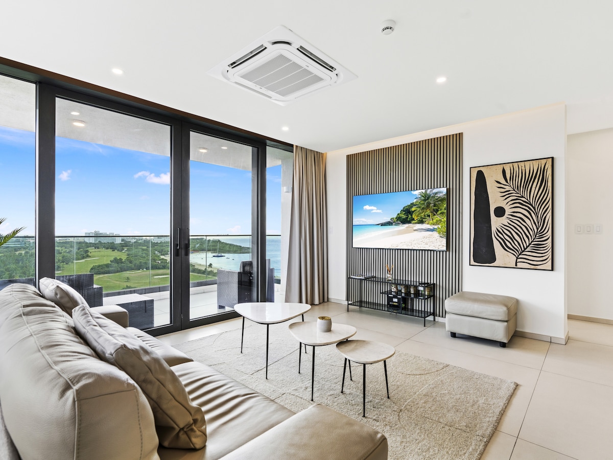 豪华装修公寓,位于Cupecoy悬崖,海景
