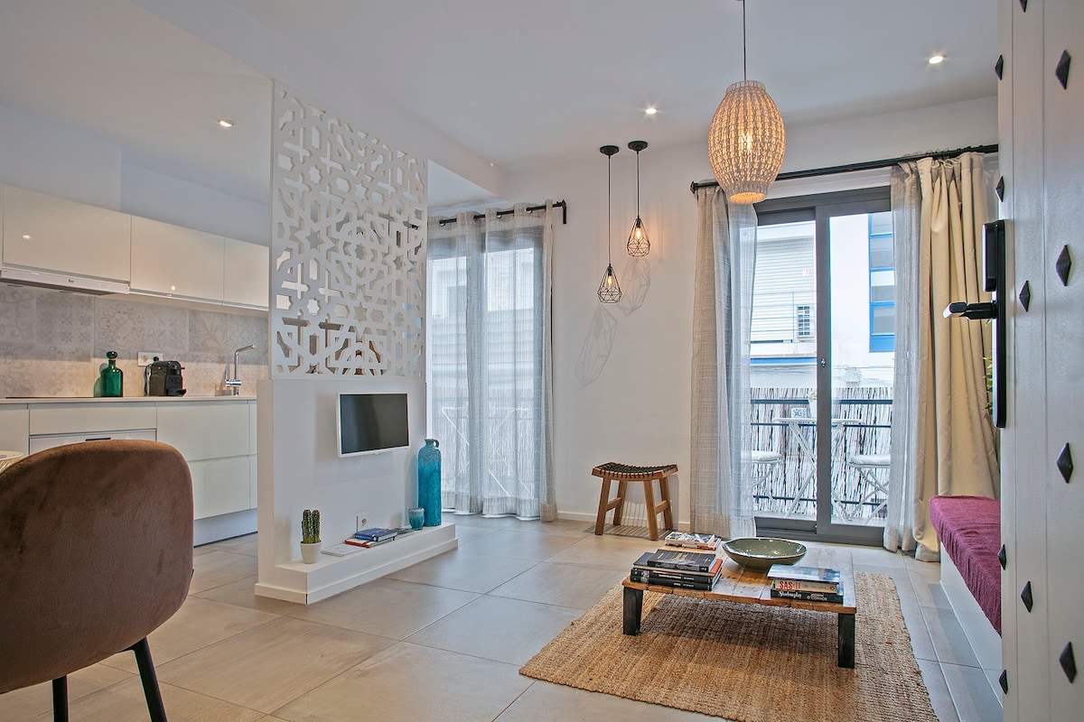 In aerea town hall and church, very quiet, by walk, 2 min beach and center, 6 min from train station, all new and equipped, 2 min to restaurants and shops.En zona Ajuntament e Iglesia, muy tranquilo a dos min de la playa y centro a 6 min estación tren, todo nuevo y equipado, 2 min restaurantes URL HIDDEN) hay que subir 1 piso y hay espacio para dejar carritos bebé o bicicletas.We dont have elevator but you need to climb 1 floor, ask for more info :)wifi and cold/hot cond.