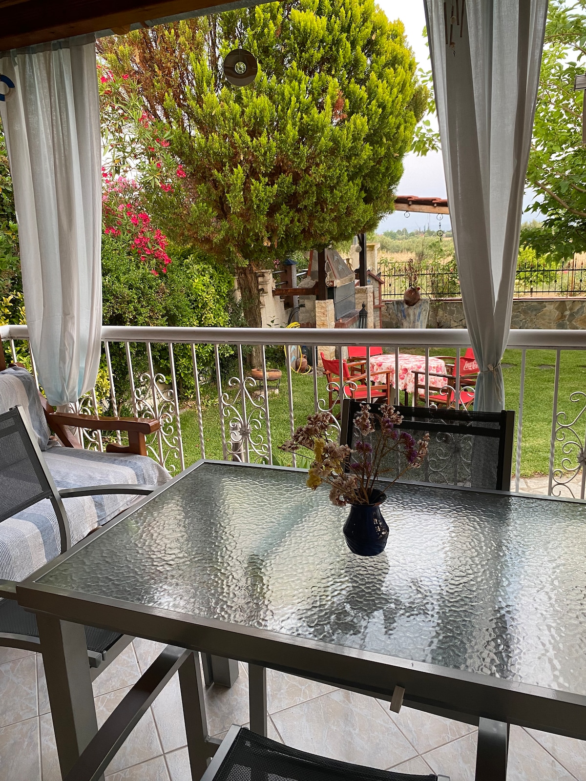 The cottage house combines the life in the countryside with the closeness to the sea since it is located only 500 meters from Trani Ammoudia or Livrohio beach and the port of Ormos Panagias. It is an ideal place for families or couples seeking for a very pleasant environment, privacy and traditional hospitality. In Ormos Panagias you will find several fish restaurants, super market, coctail bar while daily cruises round Mount Athos depart every morning.