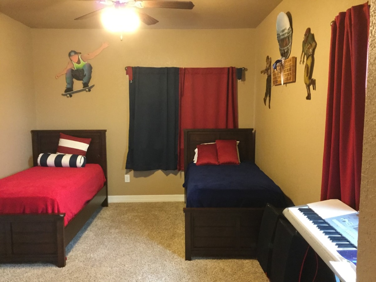 We are right around the corner from La Cantera, The Rim, Fiesta Texas, and UTSA. One block down is a beautiful running trail. We are minutes from IH-10, having quick access around the city. The kitchen is completely outfitted to comfortably cook. Coffee maker and coffee provided. There is a king bed, and two TVs. Along with a couch that turns into two twins beds. This backhouse is on our family property, it’s very safe & quiet. You have a private, covered parking area.