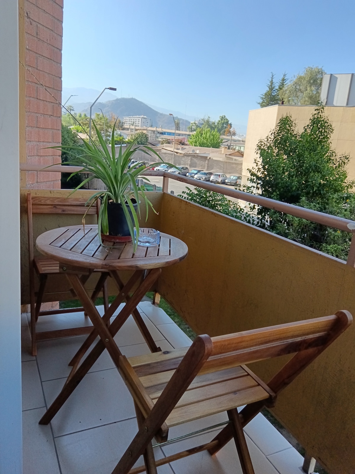 Tu familia estará cerca de todo en este alojamiento céntrico. Departamento luminoso con vista a la cordillera, ideal para tres personas. Cuenta con cama de 2 plazas, sofá cama, baño y cocina equipada. Además, tiene TV, terraza y acceso a piscina, sala de estudio y más. A solo dos cuadras del supermercado, a minutos del centro comercial y a 50 min de la capital. ¡Perfecto para una estadía cómoda y conectada!