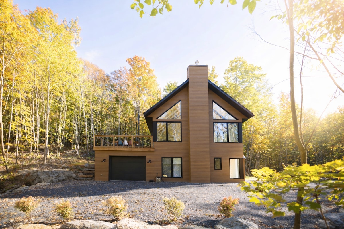 Monumental open concept, in the heart of nature. Access to trails directly behind the house. Wood stove, large modern bathroom, one bedroom + sofa bed. Another sofa bed in the living room. Ideal chalet for a couple with children or two couples. Wild birds, turkey, and deer lovers welcome! Wifi and EV charger included. Dogs Welcome! CITQ : #308038