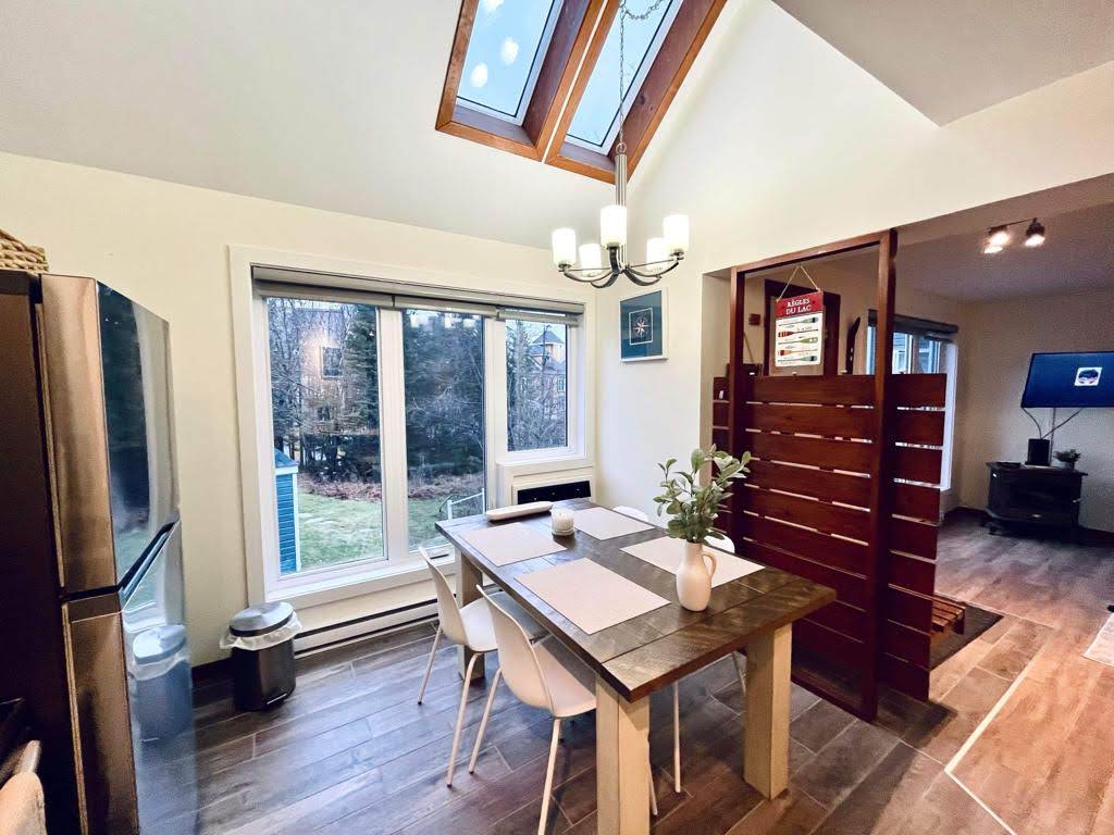 Emplacement parfait / Perfectly Located Ski-in/Ski-out Magnifique petit condo à 1 Minute à pied de la gondole panoramique (75 mètres). À proximité de tous les activités et restaurants du village piétonnier de la station Mont Tremblant. Vous stationnez votre véhicule (gratuitement) et ne le reprenez qu'à votre départ. Emplacement tranquille et parfaite pour un couple ou une petite famille. Close to all activities and restaurants of the pedestrian village of Station Mont Tremblant.