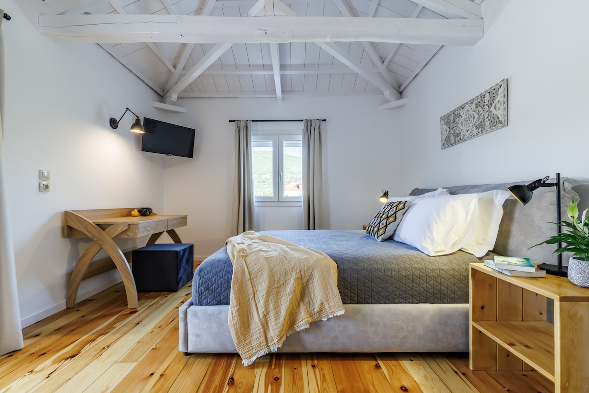 A stylishly remodelled village house, situated in the heart of Skopelos Town. This bright, spacious property boasts a roof terrace with panoramic views of the village, Palouki mountain, the port and Alonnissos island. The house is set among lively alleys teeming with shops, cafés, bars, bakeries and restaurants. The port with its tavernas, cafés and lively, yet sedate, nightlife is only a stone's throw away.