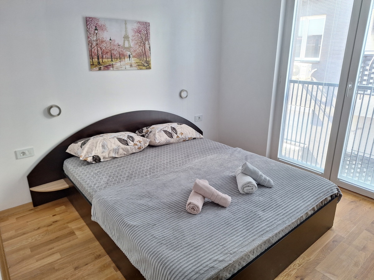 Enjoy a stylish experience at this centrally-located place This is BRAND NEW 60m2 apartment 5 minutes on foot from city park (stadium) and from the main square. Best possible location, very close to the lovely streets of Debar Maalo with many bars and restaurants. The apartment is with 1 bedroom with queen sized bed, and a living room with comfortable sofa bed + pull out bed Also 2 balconies from both rooms, one overlooking Vodno mountain. You can use it to drink a coffee or have a lunch