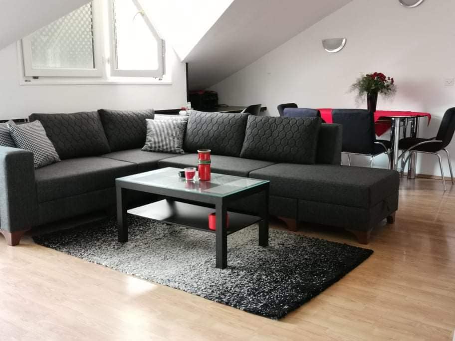 Stunning duplex apartment, recently renovated with modern and spacious design. Nestled in the best neighborhood of Skopje, everything is within walking distance. From the city center and landmarks to the best party places, restaurants and bars - you'll be in the heart of it all. Known for its high property values, this safe neighborhood ensures peace of mind during your stay. Experience the ultimate blend of convenience, style, safety, and a wonderful view in our magnificent duplex apartment