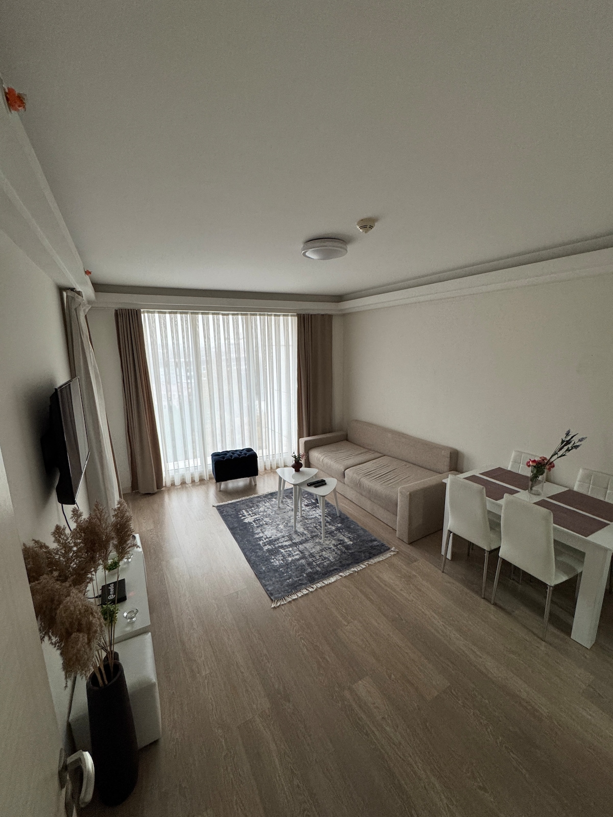 Welcome to your cozy home in the sky! Located on the 28th floor, this apartment offers amazing city views and just 4km to city center. The building is safe with 24/7 security, and free parking is included. Inside, the kitchen has everything you need to cook, and the bed is made for deep sleep with a premium mattress and pillows. The complex offers gym, sauna, spa, and a shopping mall with grocery stores, restaurants, and cafes just downstairs. I’m here to help with anything during your stay.