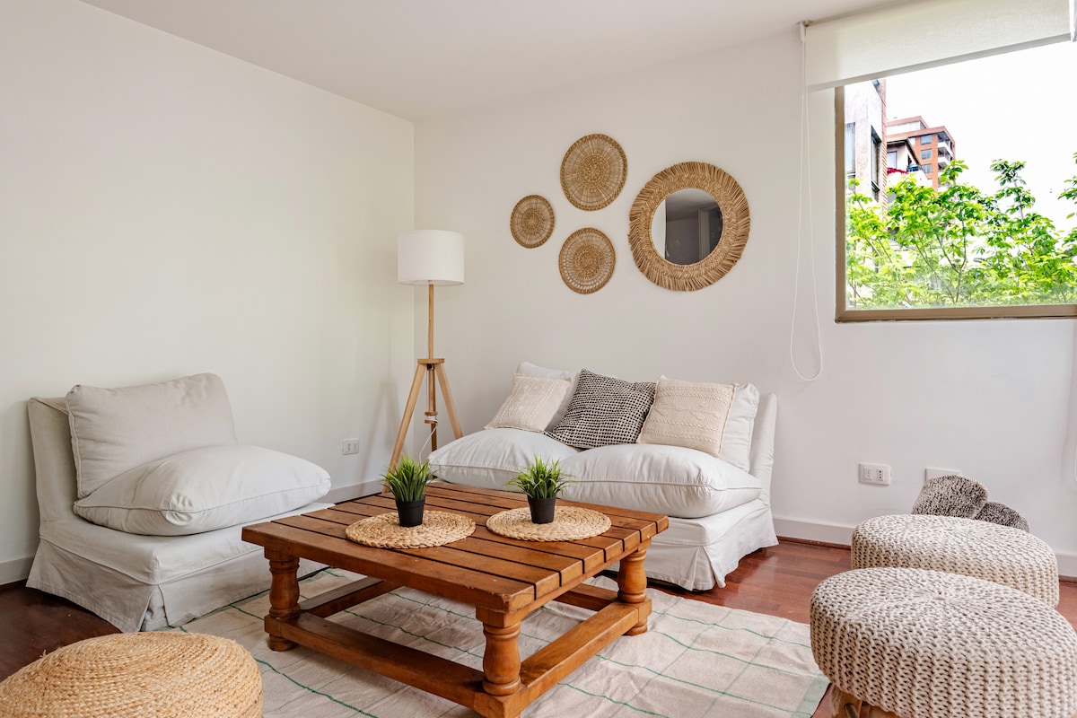 El departamento cuenta con una ubicación inmejorable en el corazón de Providencia, a pasos del centro comercial "Costanera Center", y a solo dos cuadras del Metro Los Leones. El lugar está rodeado de restaurantes, teatros, pubs, cafés, farmacias, librerías y salas de arte. Se ubica frente al Parque de las Esculturas, el que conecta con una ciclovía con el centro de Santiago a través del Parque Balmaceda y Forestal. El estacionamiento, opcional, tiene un valor adicional de $8.000 por noche.