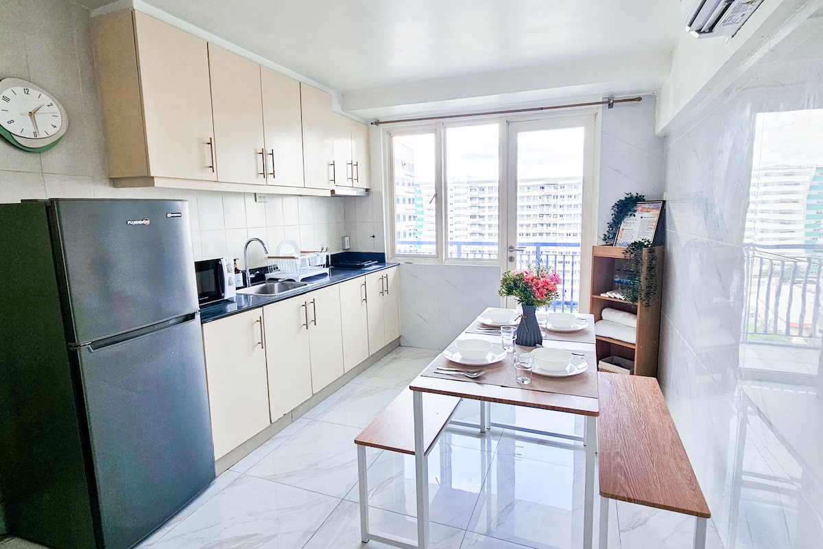 Welcome to Sea Residences Stay in a cozy, resort-style condo just less than 10-min walk to SM Mall of Asia, SMX, IKEA, and SM By the Bay. Close to Ayala Malls, DFA, and NAIA. 🛏️ 28 sqm unit with pool-view balcony 🛋️ Double bed + sofa bed 🍳 Fully equipped kitchen 📺 TV w/ Netflix & 50 Mbps WiFi 🚿 Hot/cold shower + essentials Whether you're in Manila for business or leisure, this cozy and convenient space is the perfect home away from home. Perfect for a relaxing stay in the heart of Pasay!
