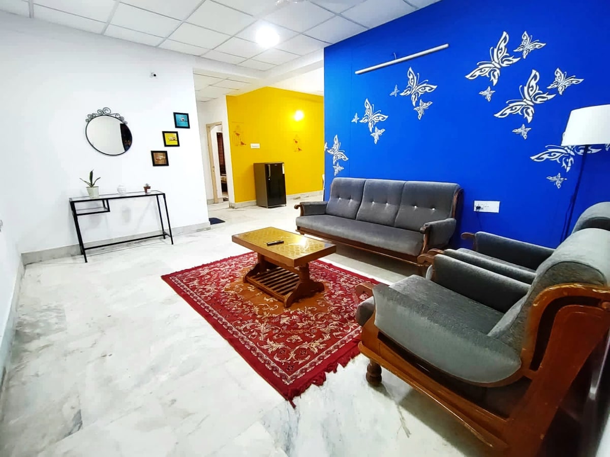 Welcome to Cinnamon House! Our modern 3-bedroom condo is fully-furnished and completely equipped to accommodate friends, family, and couples. We've put in a lot of thought – and plenty of colour – to set up the living room, kitchen, bedrooms, and bathrooms in a way that would offer you a comfortable, peaceful visit. We're located in the heart of Hyderabad, in a serene locality and can be easily reached by taxi and metro. We hope you have a pleasant stay and look forward to hosting you!