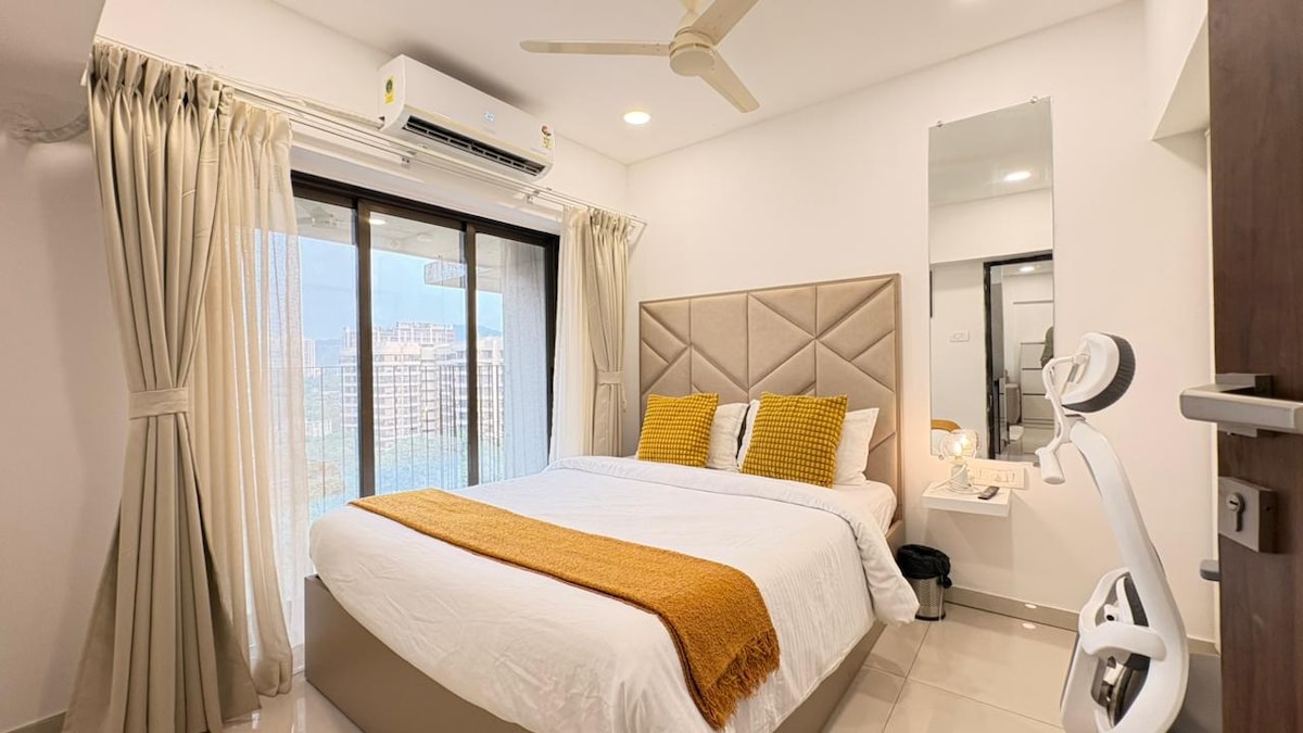 Welcome to Your Modern Day-Chic 1-Bedroom Apartment Retreat near BKC! With its minimalist design, ample workspace, entertainment options, and essential amenities, it caters to the needs of both business and leisure travelers! Features: ★ Large Work-Desk ★ Free High-Speed WiFi ★ Smart TV ★ Tata Sky with all HD Channels ★ Sound Bar ★ Microwave/Fridge ★ Air Fryer ★ Air Purifier ★ Water Purifier Book now and experience the perfect blend of modernity and comfort!