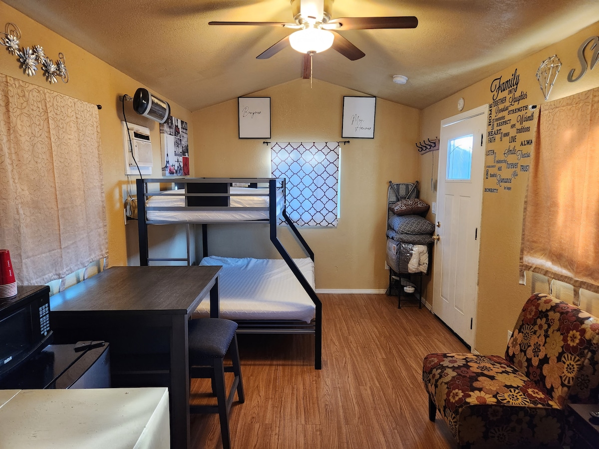 This is a newly constructed backyard unique pad located minutes away from Six Flags, Napa, Sonoma vineyards, and San Francisco. It has all the amenties of home. 43 inch RokuTV, Full size Bunkbed , bathroom, shower, toilet, mini fridge, microwave, coffee maker. * PLEASE NOTE THAT THIS UNIT DOES NOT HAVE A KITCHEN OR ANYWHERE ELSE TO PREPARE FOOD * There are three small loveable dogs that roams freely in the yard. Small cats and dogs are welcome, no more than 15lbs. Please declare upon booking