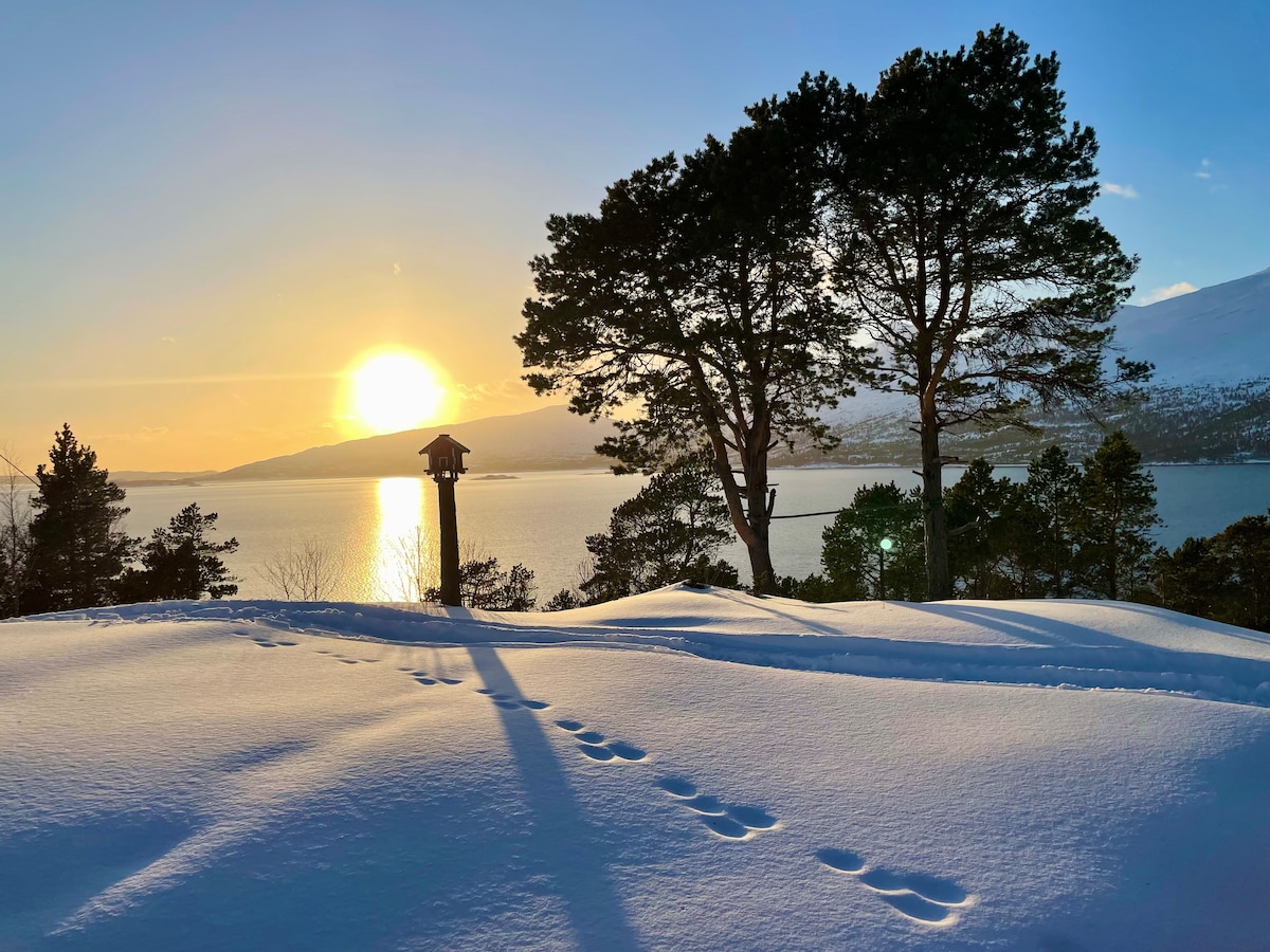 Flott hyttetun i avslappende omgivelser med fantastisk utsikt til fjord og fjell. Fine turstier rett fra hyttedøren, og med 5-20 min i bil finner du både sandstrand, fantastiske skiløyper og et mangfold av fjelltopper i storslått natur. Det er svært gode solforhold på tomta, og med lite lysforurensning i området er det store sjanser for å se nordlys på vinterstid. Fra parkeringsplassen ved RV80 er det ca 900 m å gå langs gangsti og skogsvei i småkupert naturterreng.