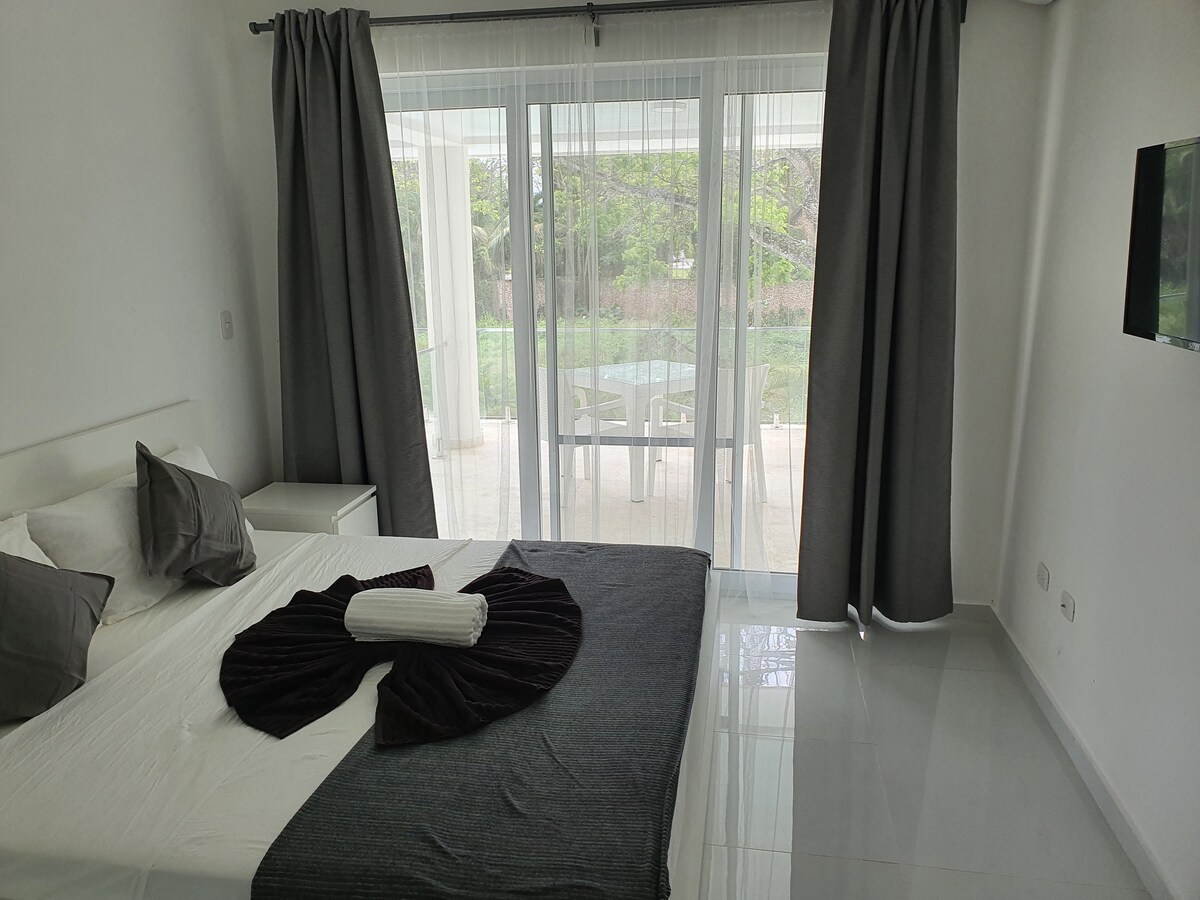 A hidden gem! Located in central Cabarete directly on the beach. This beautiful apartment is located just a few minutes walking distance to restaurants, shopping, & bars. Not only being a great location, this room offers an exquisite view of the ocean! This rooms offers all the amenities you will need to assure a relaxing, peaceful vacation in paradise. On site we also have a Restaurant, Bar, Gym, and Spa! *Breakfast is also included in your stay.
