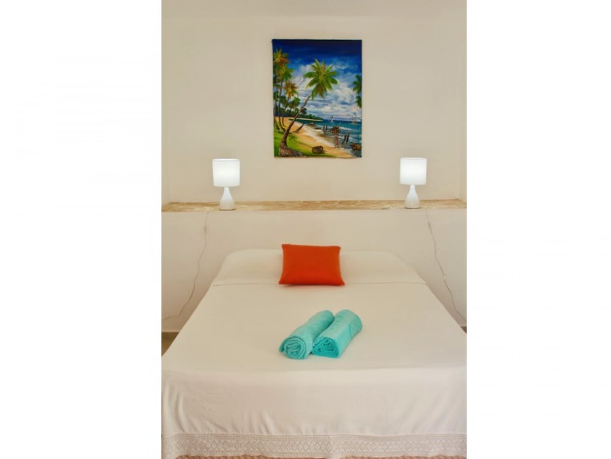 One Bedroom Suite & Breakfast at Coral Blanco Boutique Hotel located in Sosua. One Bedroom Suite includes Bedroom with Queen size bed, Bathroom, Living room with Sofa, flat TV, Safe, A/C, Refrigerator, free WiFi, Parking, 24h Security, Maid service daily. Outdoor swimming pool, Garden, Bar & Restaurant area. Just 100m (300ft) from the beautiful beach Playa Chiquita.