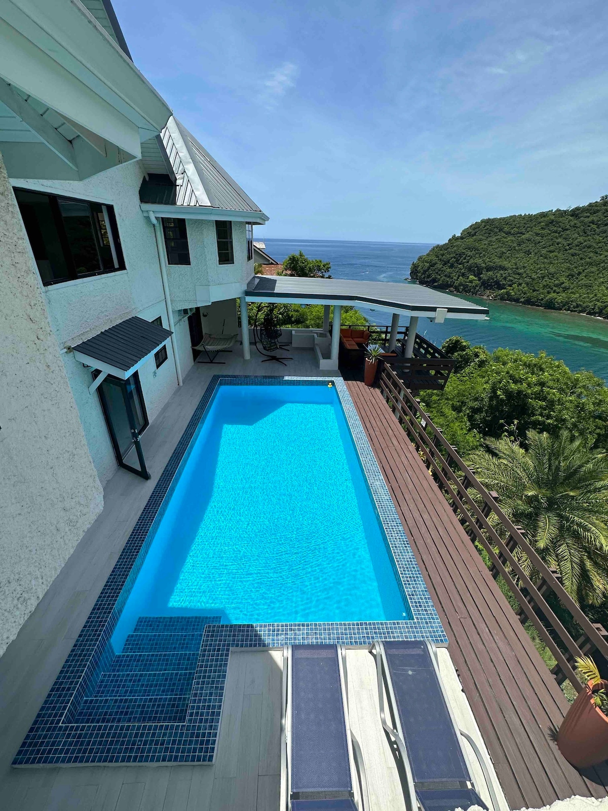 Nestled in Natural Beauty. Situated beside Gros Piton World Heritage Site Sweet Breezes has 3 bedrooms, 2 baths,infinity pool, spectacular views over all 3 floors. Sun or shade all day long. Views from every window. Roof top offers spectacular views as well as star gazing. Handcrafted mahogany red cedar and greenheart woods are used throughout. Locally sourced tile, furniture and artwork all add to the laid-back Caribbean vibe of Sweet Breezes. A/C Full kitchen Linens , towels provided.