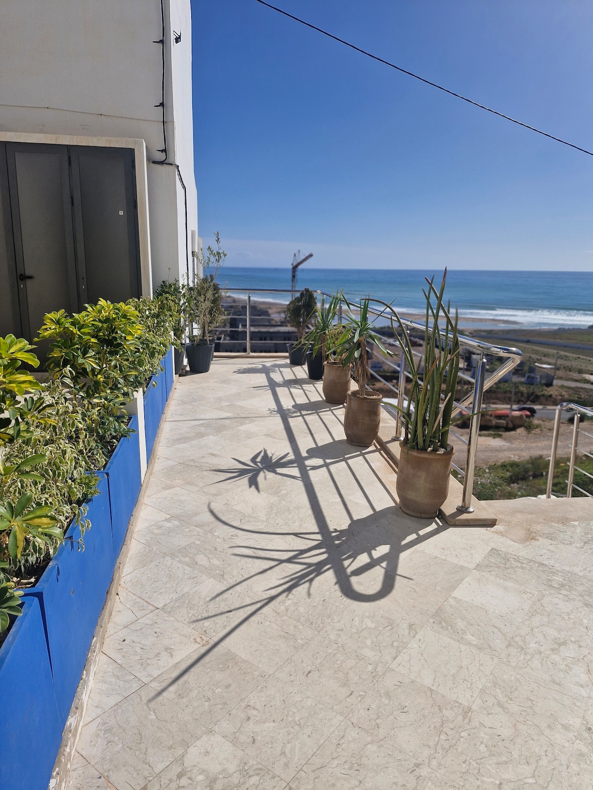 Our duplex apartment, just 3 minutes from the beach, offers 2 bedrooms, 2 private terraces, and all amenities.Short Walk distance to shops, cafes, and restaurants, plus surf hotspots like Devil's Rock and Banana Beach. Whether you're a pro or beginner, Tamraght's consistent swells and long beaches make it a surfer's haven. Unwind on your terrace with panoramic Atlantic views, Late night conversation with loved ones, and create lasting memories in Morocco's surf paradise