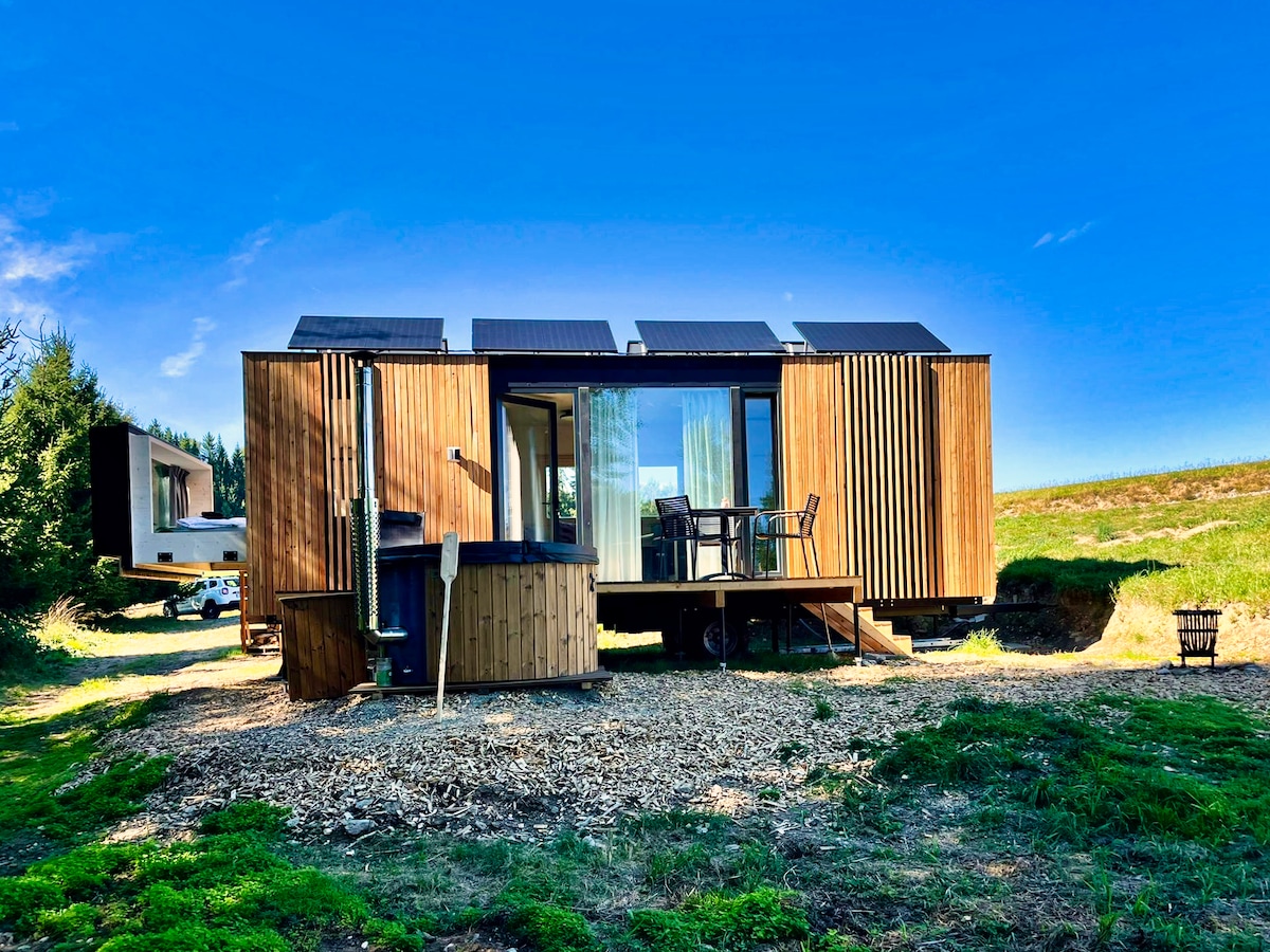 Tam kde se zastaví čas. Kilometry kolem nenajdeš člověka, jen rozlehlé pláně a nekonečný výhled až za horizont, kde vychází slunce. Ranní rozbřesk si můžeš vychutnat ve velké pohodlné posteli at už uvnitř a nebo si jí klidně vysunout ven a odpočívat pod stromy. Koupelna s teplou vodou, záchodem, plně vybavená kuchyň, krbová kaman a velká panoramatická okna a vířivka utváří tón komfortu uprostřed divoké šumavské krajiny.