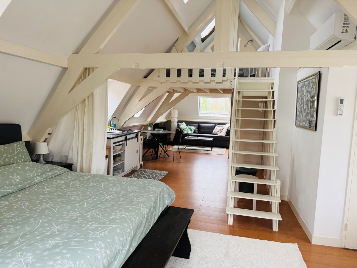 In the middle of the historic center of Delft is our monumental building located. In the attic this spacious studio is fully furnished. A private bathroom and kitchen are provided. Please note!! You have to climb 3 steep stairs to get to your apartment. We are not always personally present to help with large suitcases. Because of this it is not suitable for people who have difficulties walking.