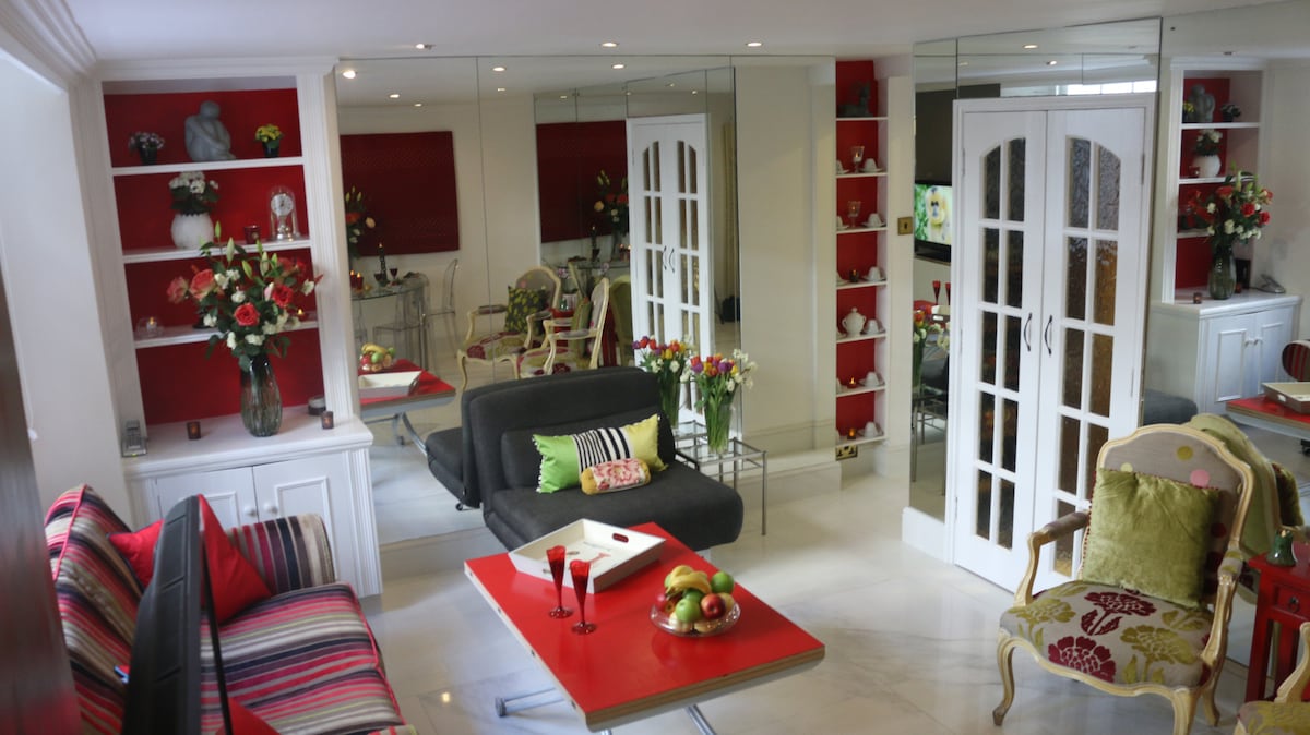 Enjoy an evening glass of wine surrounded by greenery on the private garden terrace of this Italian-inspired apartment. Inside, a generous cream corner sofa makes it easy to slow down, switch off, and settle in. Set in SW10, the apartment offers a quieter residential feel while staying well connected to the rest of London. This is a place with its own sense of style — thoughtfully put together, a little unexpected, and refreshingly different from the usual stay.