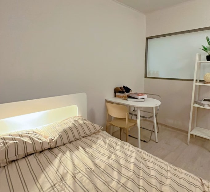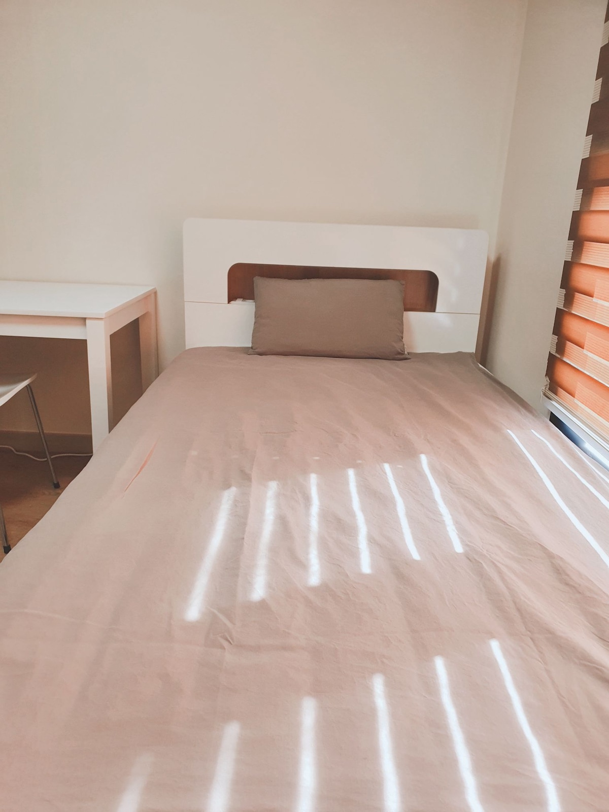 '- 房间24.75平方米,床135*200,书桌1070*700,可以保管行李 - 具备可办公、可做饭的简单餐具,智能电视 50 英寸 - Wifi, 大衣柜, 大冰箱, 洗衣机, 晾衣架, 吹风机, 毛巾, 纸巾, 水 收费停车 洗发水、沐浴露、护发素、香皂 - 从仁川机场到宿舍正门乘坐机场巴士时56分钟(包括6分钟步行) - 从宿舍可以走着去的地方 大创(6分钟),OLIVE YOUNG(3分钟),时代广场(3分钟),汗蒸房(6分钟) -从宿舍坐地铁去的地方 (附近有 1 号线永登浦站、2 号线文来站、5 号线永登浦市场站) 东大门 DDP(41 分钟),汝矣岛汉江公园(21 分钟),清溪川(41 分钟),景福宫(39 分钟) 弘益大学入口站(24分钟),北村韩屋村(41分钟),明洞(36分钟),圣水洞(47分钟) 文来洞(12分钟),永登浦站是KTX停车站,去釜山等地方很方便。 清晨感受着从窗户照进来的温暖阳光 晚上坐在房间的窗边享受时代广场的夜景