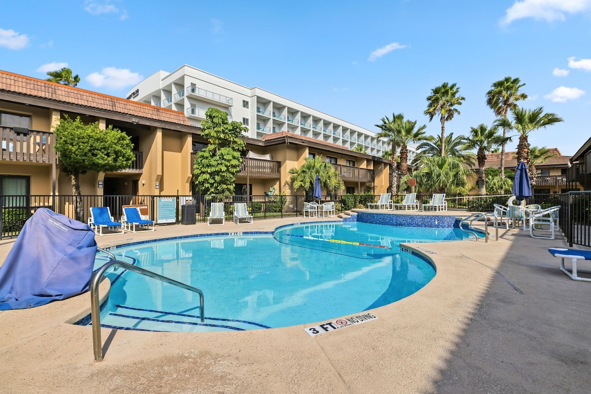 Discover beachside bliss in our 3BR/2BA condo on South Padre Island, a family haven for 8. Wake up to Gulf views in the spacious bedrooms, lounge in the tastefully decorated living space, and savor meals on the private balcony. Dive into two pools amidst The Hawaiian-inspired tropical landscapes. With easy beach access and island attractions nearby, create memories that last a lifetime as you build sandcastles, splash in the waves, and explore the vibrant island culture. STR App #2024-0174