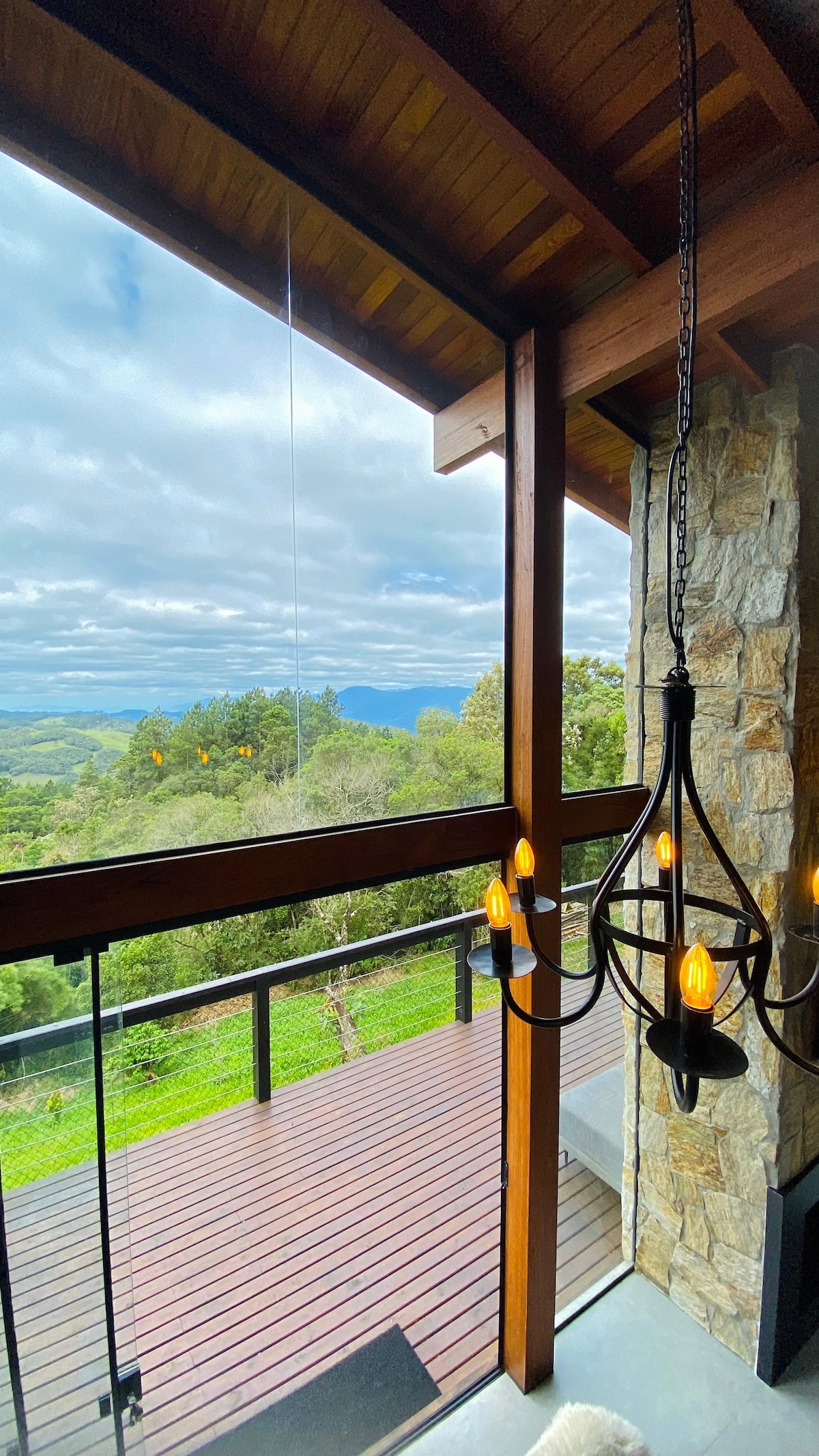 Uma cabana A frame imersa na mata nativa e nos parreirais de uma família de origem italiana. Projetada para acordar com o som dos pássaros e dormir com o barulho da água. O ponto alto fica logo na chegada, o deck fica em cima de uma cachoeira. A cozinha é completa com utensílios de ótima qualidade. O banheiro tem vista para a mata, banheira de imersão e amenities L'Occitane. Todos os cômodos são decorados nos mínimos detalhes. Ideal para relaxar e se colocar no compasso certo da vida.