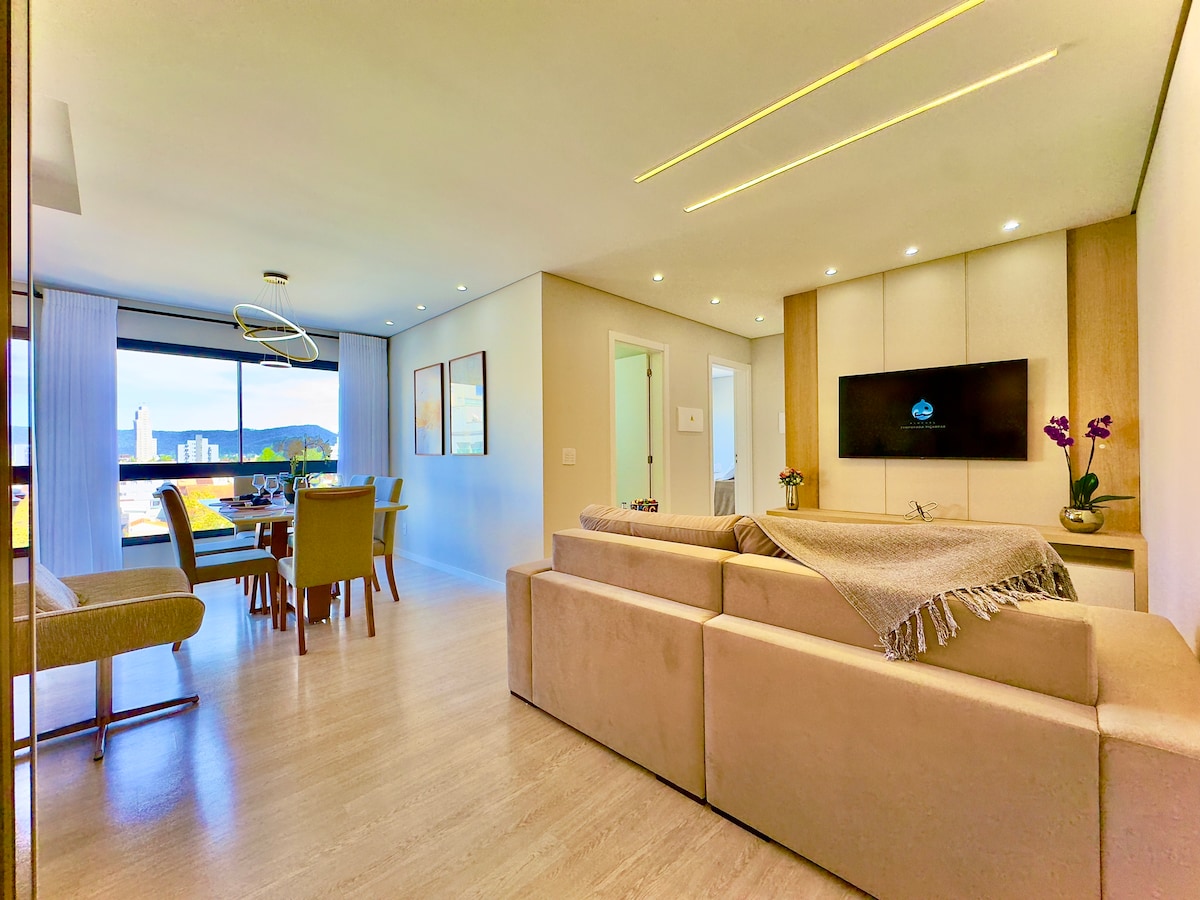 Desfrute Balneário Camboriú neste apartamento de luxo recém reformado com vista ao mar próximo a restaurantes e mercados. Tem 2 suítes, sendo uma delas com vista ao mar e cama king. A sala possui TV de 75 polegadas e a sala de cinema com TV Mini Led Ambilight de 65 polegadas e sistema de som Sonos. Luzes, cortinas, ar condicionado e TVs na sala de estar e na sala de cinema são smart e operados via Alexa Show. A cozinha totalmente equipada e dispõe de máquina de lavar louça e filtro de água.