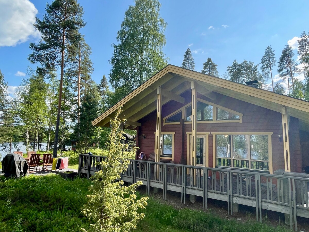 This wonderful lakeside log cabin is located 25 km north from Mikkeli. The cabin, finished in 2014, invites you to relax and enjoy the tranquility and beauty of Finnish nature. It's cosy and decorated with high-class natural materials and comfortable furnishings and is fully equipped with a modern, compact open plan kitchen, two bedrooms, each with 160 cm x 200 cm beds, loft room with a king size bed, an inviting living room and dining area, bathroom, sauna, separate toilet and a terrace.