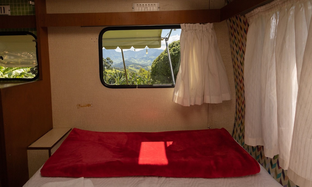 Imagine a experiência de se hospedar num ônibus de 1972 totalmente restaurado e transformado em uma Cabana/Motorhome?! A nossa imaginação criou essa possibilidade! Essa raridade fica localizada na cidade Joanópolis, divisa com Minas Gerais, interior de São Paulo, em um terreno que ao mesmo tempo fica na beira da Represa Jaguari e no pé da Serra da Mantiqueira ( a maior serra brasileira). Um lugar que oferece inúmeras cachoeiras, rios, trilhas e paisagens exuberantes. Venha ter essa experiência !