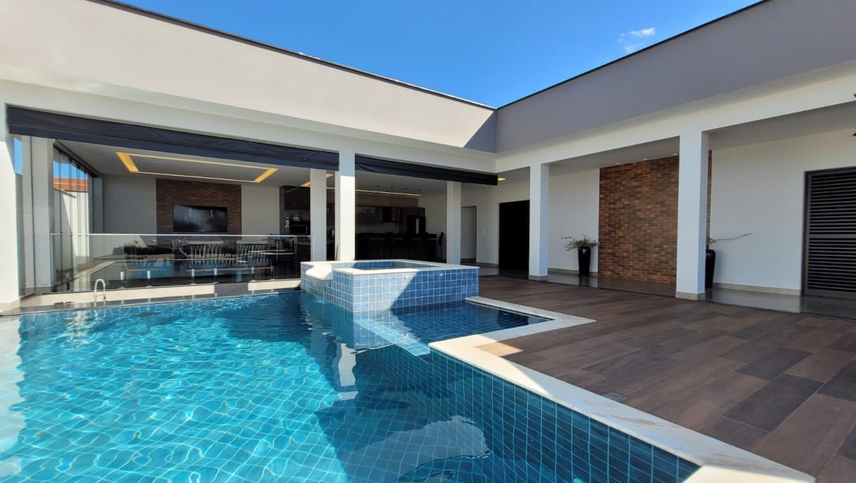 Casa recém construída, espaçosa e pertinho da praia. São 3 suites espaçosas no andar superior e um dormitório de apoio semi suíte no térreo! Com área gourmet, piscina linda com prainha, amplo deck para receber os amigos e com proteções para as crianças, sala e cozinha integrada que se estende a área gourmet! Estar externo confortável com ventiladores e todos os cômodos da casa com ar condicionado. A casa fica a 2minutos a pé da praia