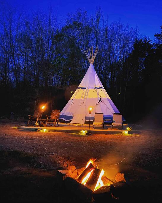 TIPI HAS MINI-SPLIT HEAT AND A/C. Enjoy a truly unique and relaxing stay at the first glamping Tipi in the Shawnee. The Tipi is in a very secluded, remote and private location only steps away from the Shawnee National Forest. Experience a luxurious and remarkable getaway and explore everything the Shawnee has to offer. You will have direct access to the trail system from the Tipi with Sand Cave, Maxwell Ford and Millstone Lake nearby. We do have a no guest under 18 and no pets policy.