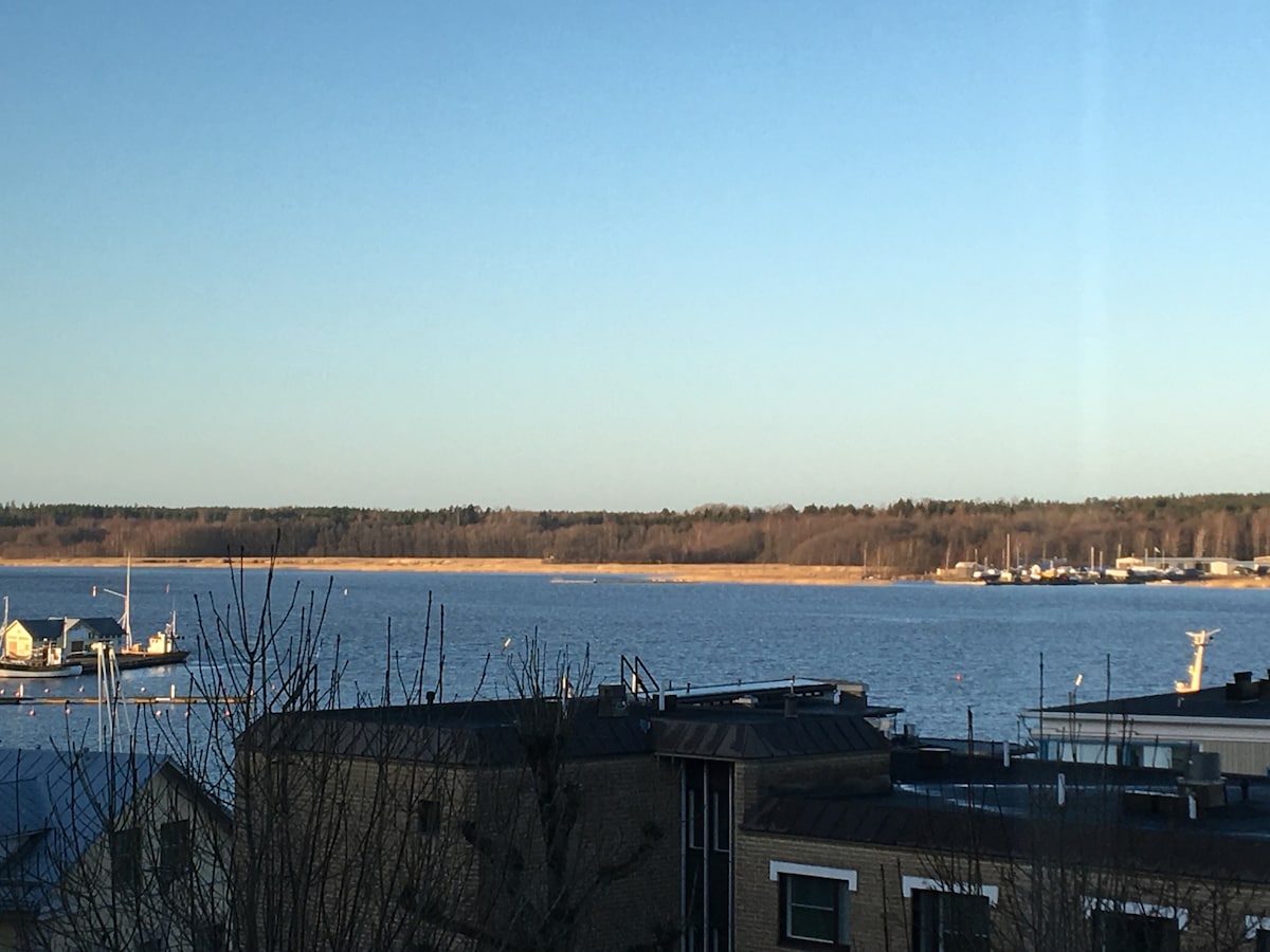 Remontoitu asunto mahtavalla esteettömällä merinäköalalla, vain 200m rantaravintoloista, puistoista sekä rannasta. 300m päässä takapihalta on keskustan kävelykatu ostosmahdollisuuksilla, ja vain 500m päässä lumoava vanha kaupunki. Asunnossa iso lasitettu parveke, josta avautuu upea auringonlaskunäkymä meren sekä vierasvenesataman yli. Asunnossa 1x140cm parisänky sekä vuodesohva 140cm. Lakanat/Pyyhket löytyy ilmaiseksi, mutta majoittujan on pestävä nämä itse käytön jälkeen ennen lähtöä.