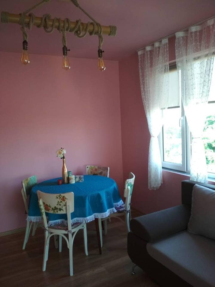 the apartment is located in the ideal center of Nessebar.In close proximity to everything needed 50 meters public transport 50 meters 100 meters pharmacy 50 meters grocery store 50 meters restaurants 200 meters from the entrance to the beach and one kilometer from the old Nessebar.The apartment has two separate bedrooms with double beds kitchen equipped with oven two hot plates extra hot water kettle large refrigerator with freezer dishes cups forks. if necessary mine and washing machin. welcome