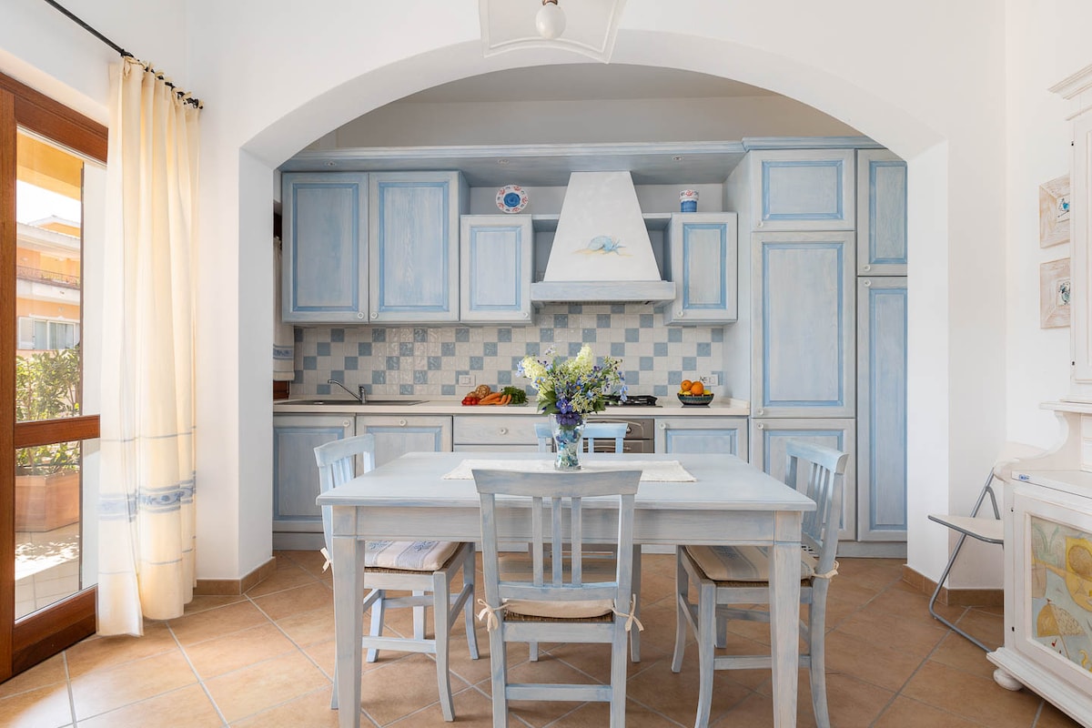 Nella zona più elegante della Maddalena, a due passi dalle spiagge, un appartamento completamente rinnovato con una terrazza sul mare dalla vista mozzafiato. La casa sorge accanto all'unico hotel a 5* Lusso della Maddalena, con Spa & Centro Benessere accessibile a pagamento, e all'eccellente MaMa Pizza. Casa ideale per una coppia, accoglie fino a 4 persone. Cucina accessoriata a induzione con ogni elettrodomestico. Due smart tv: in camera e in soggiorno. Wifi super veloce e angolo smart working.