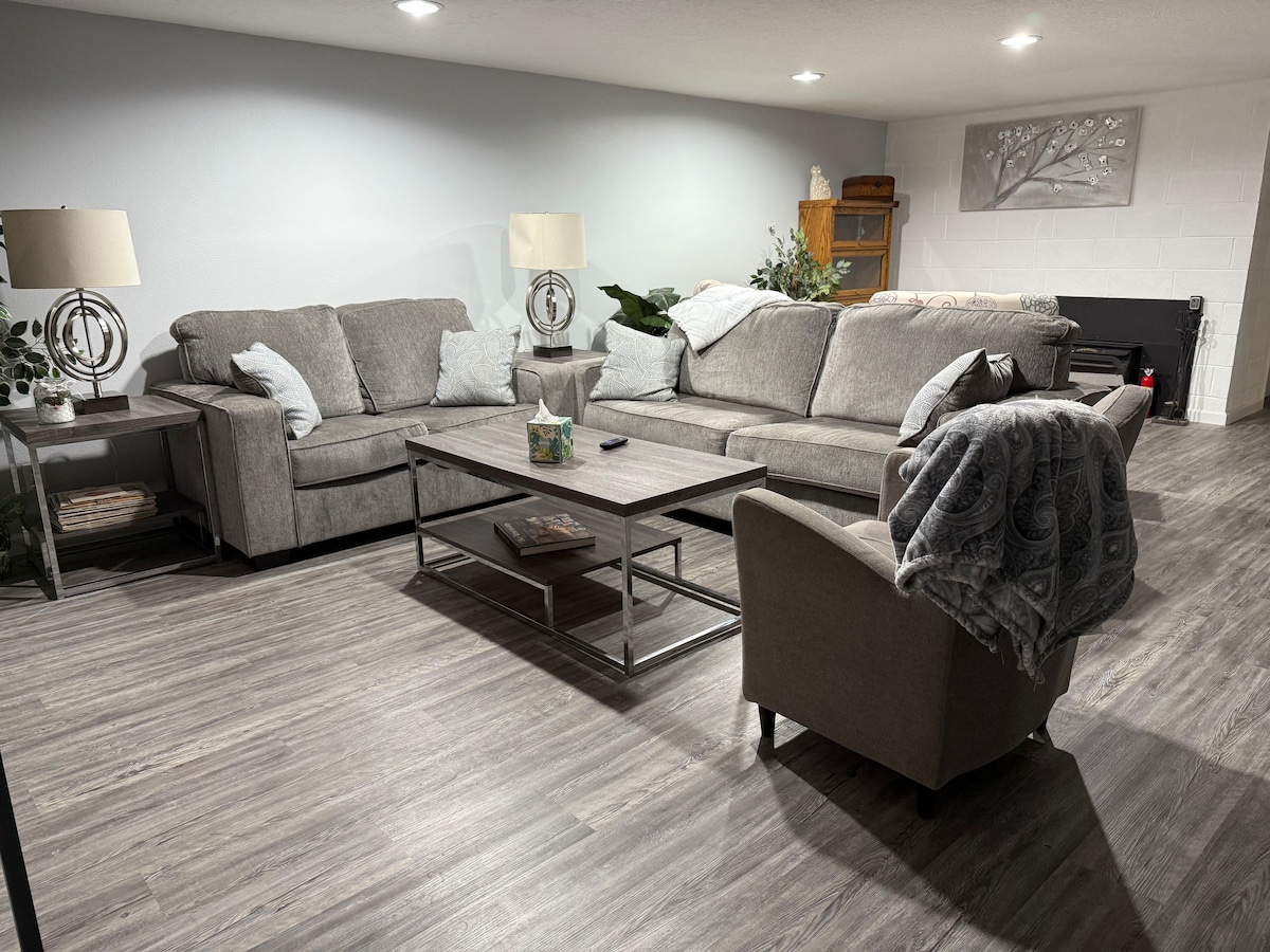 Just 20 minutes from downtown, our sunny daylight basement has been remodeled for you! Enter through your own door with a key-pad lock. A hot tub and gazebo are right outside the door: patio furniture, a gas fire pit, and a BBQ grill ready to be enjoyed. The interior space is bright and sparkling clean! The kitchen opens into the family room with a smart TV. Just around the corner are two bedrooms and a newly remodeled bathroom. Ask us about renting our backyard saltwater pool or E bikes!