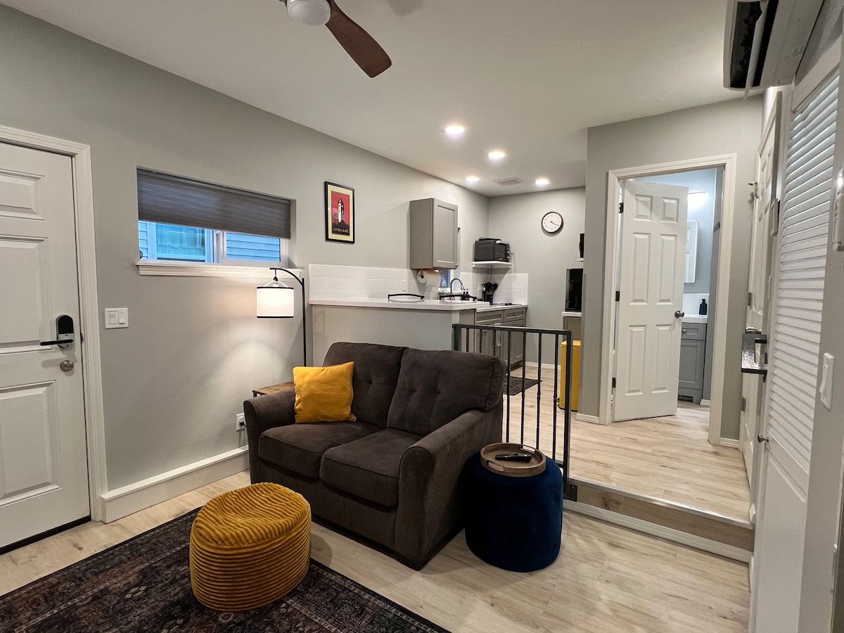This brand new space will accommodate your group of 4 with every creature comfort. We are pet friendly with pre approval and a fee. The full kitchen is well stocked with everything to make a great meal. Enjoy your meal on the shaded patio. The beds are high quality and comfy. The internet will support video conferencing. We monitor the outside of premises with Ring security cameras. Please read our house rules for all details prior to booking