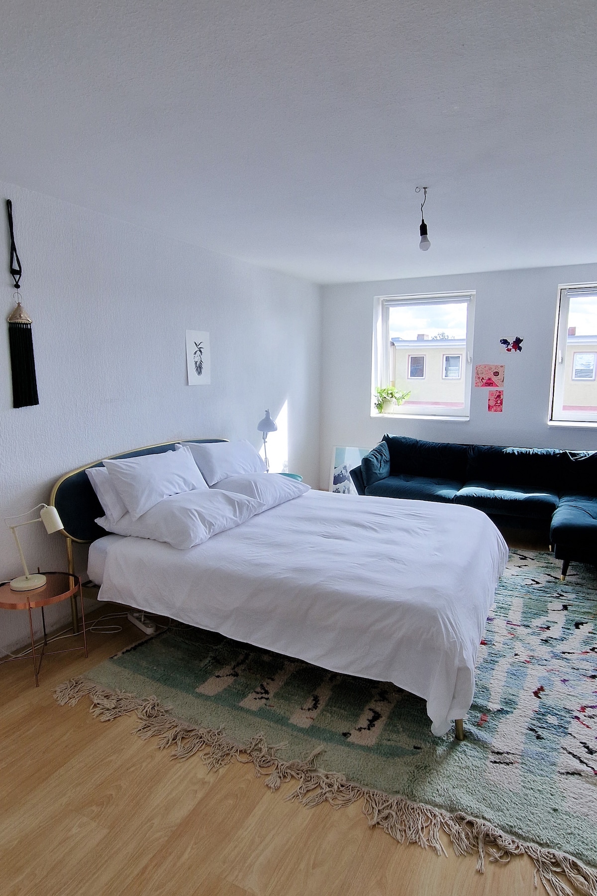 Our light rooftop apartment with its 150 year old wooden beams lies in the middle of a lovely neighbourhood. It comes with a small but stylish kitchen and a luxurious bathroom, equipped with a rain shower and a Finnish sauna. we offer Netflix, cable TV and very fast Internet. Your stay with us will be carbon neutral, since we fully compensate our emissions. The apartment hosts up to three adults or two adults with children.