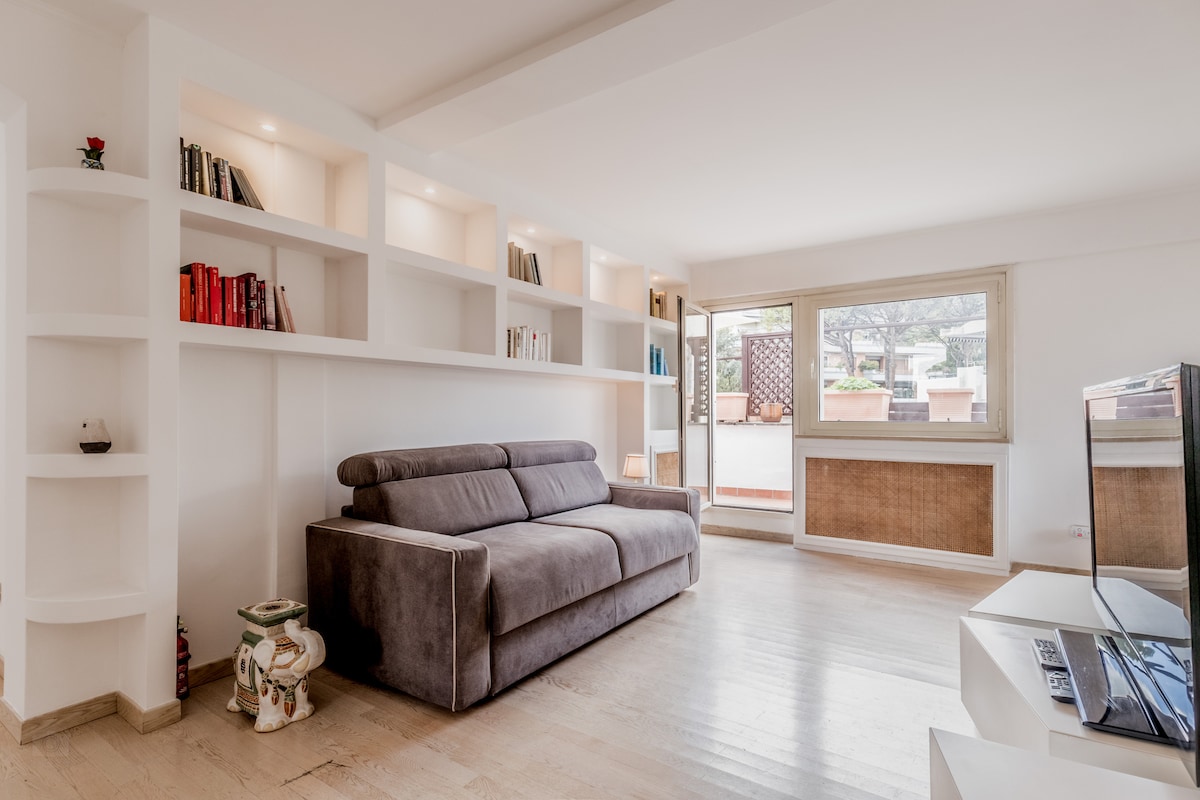 Fatti abbagliare dalla luce romana in questo appartamento dalle linee leggere e sognanti. La cura dei dettagli si riflette nella capacità d'imbrigliare la luce tra spazi e mobili, per farne comodità sorridente e raccolta. Attico al settimo piano di un elegante edificio situato a Roma Centro con una grande terrazza che si affaccia sul Parco di Monte Mario e da dove puoi ammirare la cupola di San Pietro. Wifi ultra veloce. No bambini Check in 9 pm/11 pm Extra €50. No check in dopo 11 pm