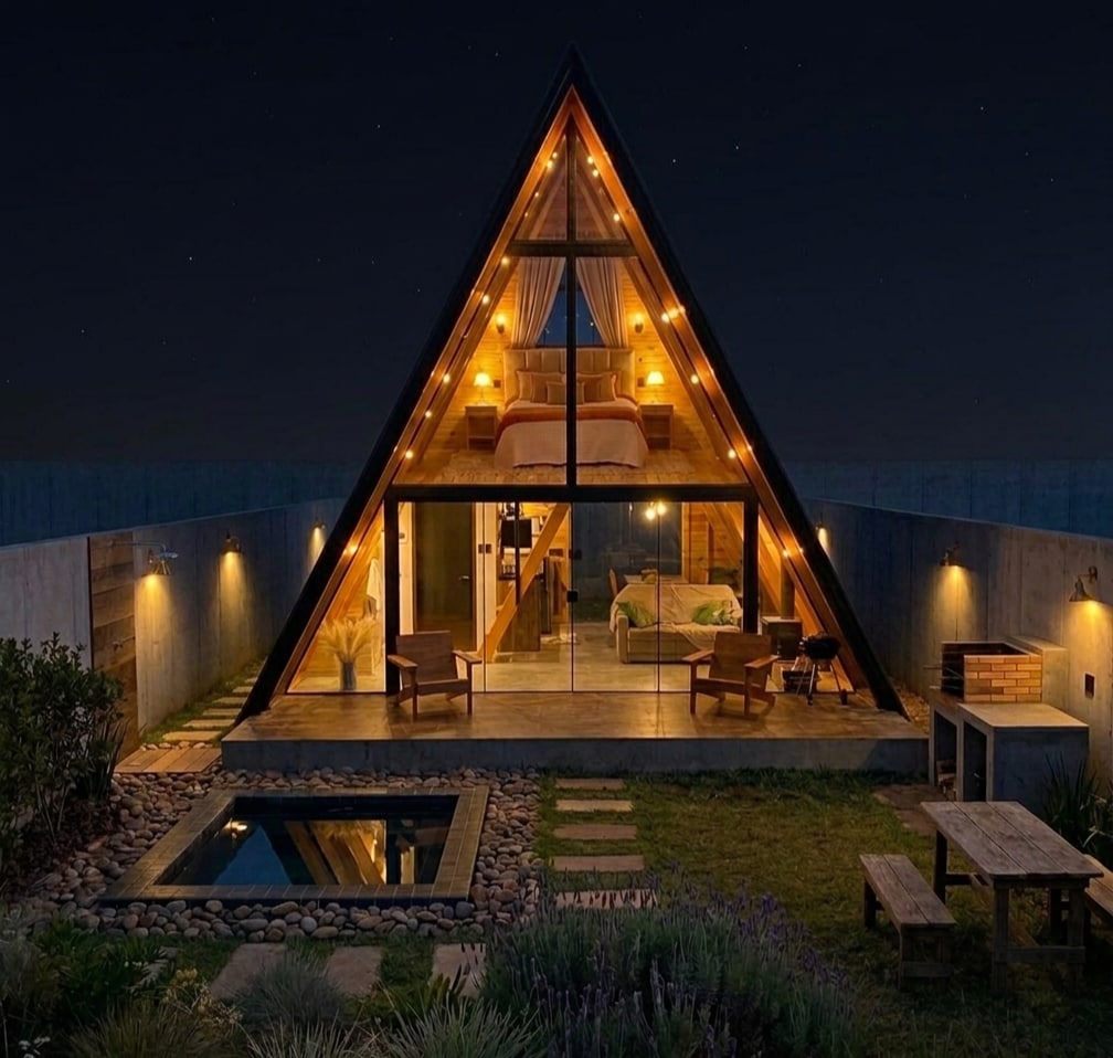 Descubra nosso chalé A-Frame de arquitetura exclusiva, perfeito para uma escapada romântica ou familiar. Desfrute de um interior moderno e aconchegante destacando a elegância da madeira usada no nosso espaço que conta com quartos confortáveis (com ar-condicionado), áreas de convivência iluminadas por lustres contemporâneos e uma cozinha gourmet equipada. Mergulhe na tranquilidade do nosso vasto jardim, e área externa com churrasqueira. Um retiro sofisticado, onde o conforto encontra a natureza.