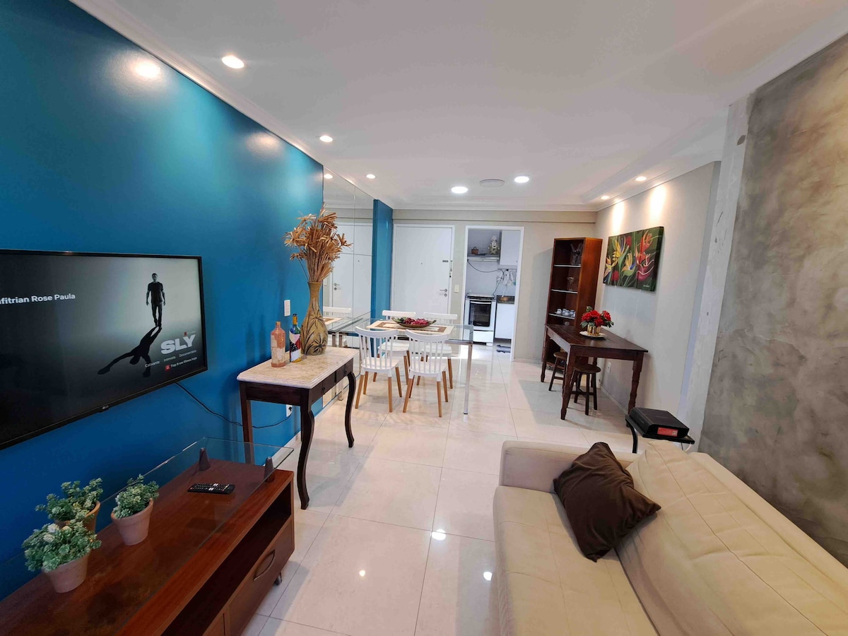 Apartamento para até 4 pessoas. Sala com sofá-cama queen, tv a cabo com, netflix, wi-fi. Suite c/ 1 cama de casal e ar condicionado. Roupas de cama e banho disponibilizadas . Cozinha completa. Aproveitem este espaço idealizado para transformar suas férias na praia, em férias dos seus sonhos! A vista de tirar o fôlego, a brisa que te acalma, unindo a tudo isto, todo o conforto de um apartamento funcional e cheio de boas energias! Venha viver esta magia , aguardo vocês!