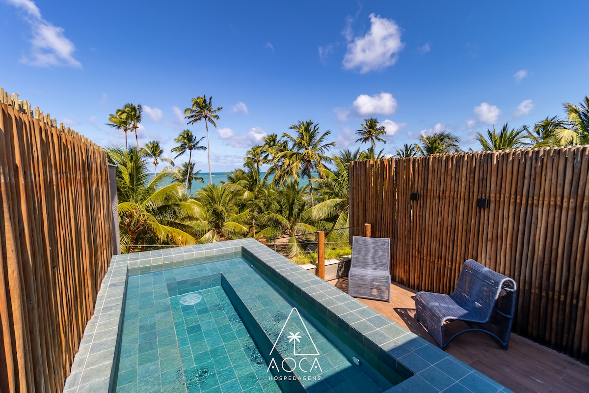 Espaço único e totalmente integrado a natureza dentro do condo-resort Villas do Pratagy, conhecido pela piscina de borda infinita mais bonita de Alagoas. Bem pertinho de Maceió, estamos no meio de uma reserva de Mata Atlântica. Curta caminhada até a praia de Pratagy. Local perfeito para experiência em meio a natureza sem abrir mão do conforto e estilo. Bangalô Master com incrível vista para o mar e a reserva florestal. Piscina privativa no deck totalmente escondida pela vegetação. TOP DEMAIS!