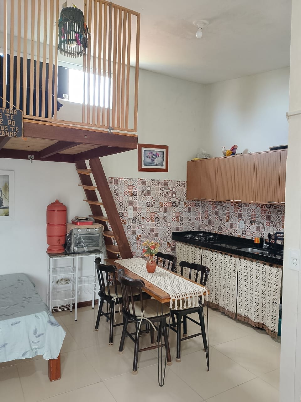 Sapê 01 - localizado no térreo Local pensado com muito carinho para proporcionar bem estar, conforto e autonomia, cada um com sua privacidade. São 4 lofts, todos com cama de casal e sofá cama, acomodando até 4 pessoas entre adultos e crianças. Em todos há banheiro privativo e cozinha compacta, c/frigobar, fogão, microondas, liquidificador, sanduicheira e todos os utensílios necessários para pequenas refeições. Área externa e comum com piscina, churrasqueira, chuveirão, lavabo e estacionamento.