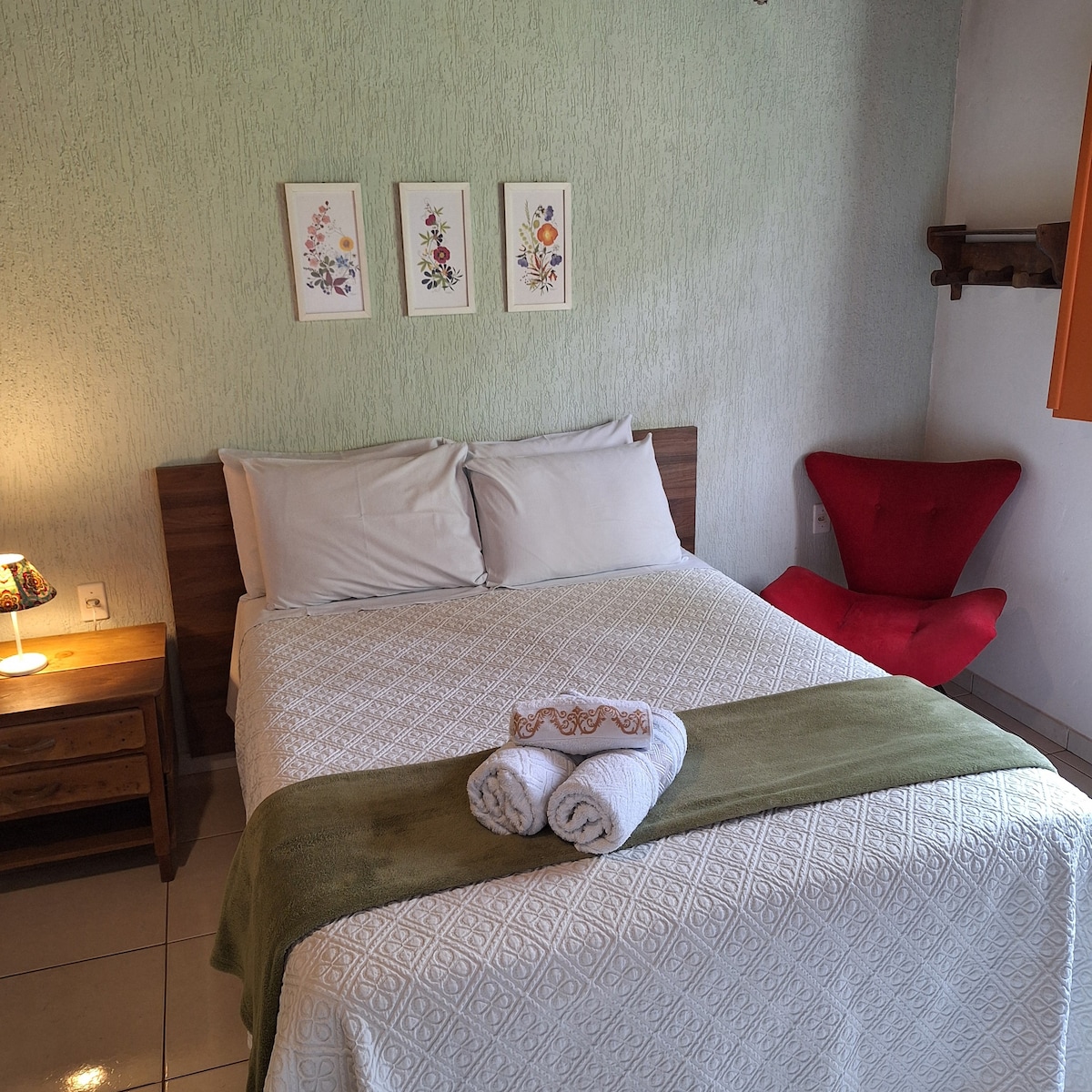 Hospedagem funcional e confortável em um bairro residencial distante apenas 2km do centro histórico. A suíte possui entrada independente, varanda privativa, frigobar, ar condicionado smart TV e uma boa rede de Wi-fi. Fornecemos roupas de cama e banho! Tudo o que você precisa para uma hospedagem prática, sem abrir mão do conforto!