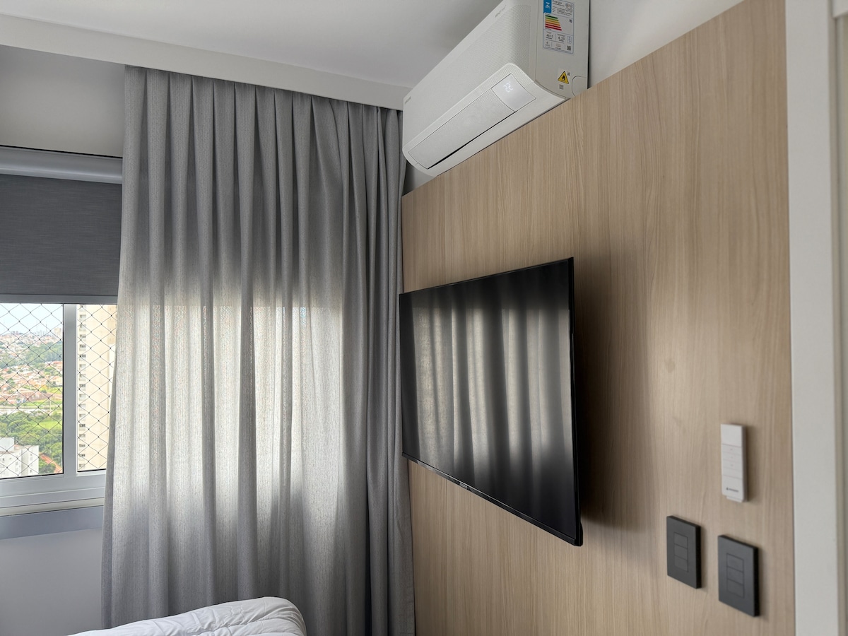 Studio sofisticado, moderno e de alto padrão, localizado próximo a principal avenida de Campo Grande, a Afonso Pena. O espaço é perfeito e aconchegante para seus dias de lazer ou trabalho. Completamente equipado com todos os utensílios de cama, mesa e banho, TV digital e dois aparelhos de ar condicionado e internet. O edifício ainda possuí uma linda vista panorâmica para a cidade. Além disso, o prédio em que está localizado oferece todo o conforto e luxo que você merece.